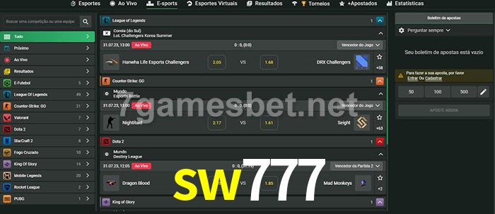 A aposta sw777 oferece aos jogadores a experiência mais conveniente de apostas em eSports!